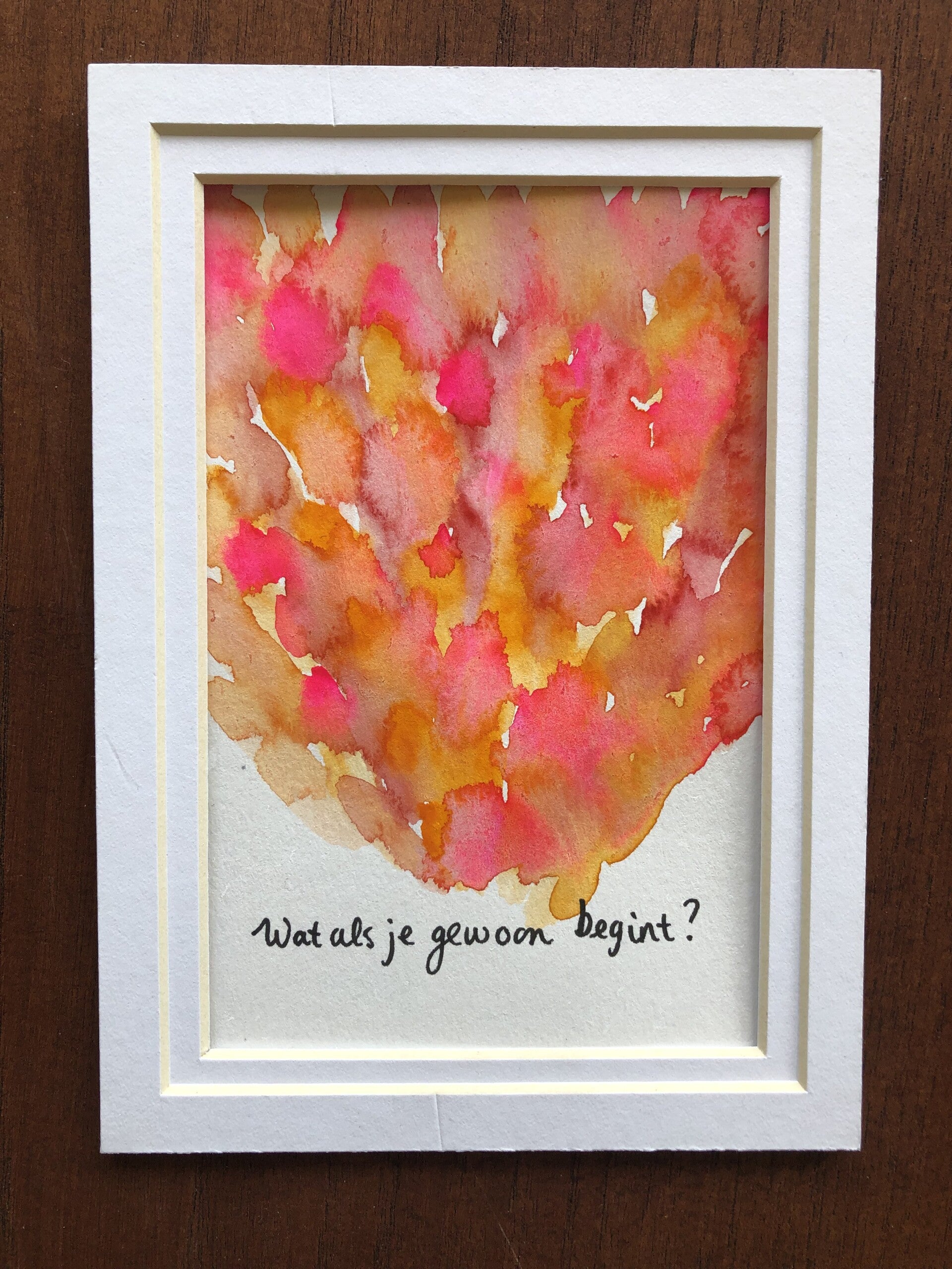 Origineel kunstwerkje in passepartout, 13 x 18 cm
