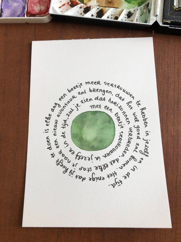 Nieuw: kunstwerkje in A5 formaat, vertrouwen in jezelf en in de tijd